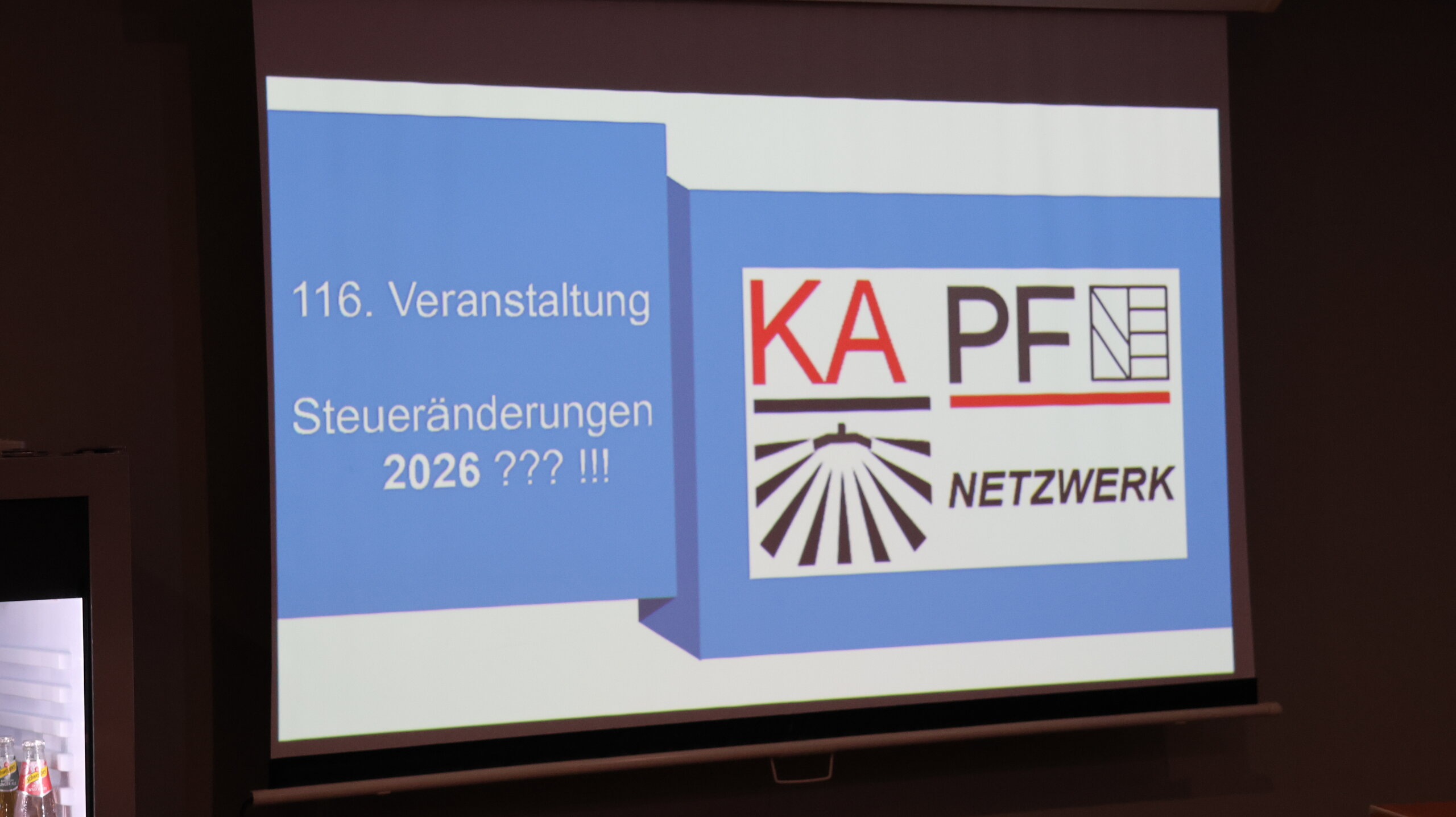 Am 11.02.2026, ein Mittwochabend, lud das KAPF-Netzwerk zu seiner 116. Netzwerkveranstaltung rund um aktuelle Entwicklungen im Steuerrecht ein. Unter der Leitung von Gerhard Kessler, Sprecher des Netzwerks, erhielten die zahlreich erschienenen Unternehmerinnen und Unternehmer eine fundierte Übersicht zu steuerlichen Neuerungen im laufenden Jahr.